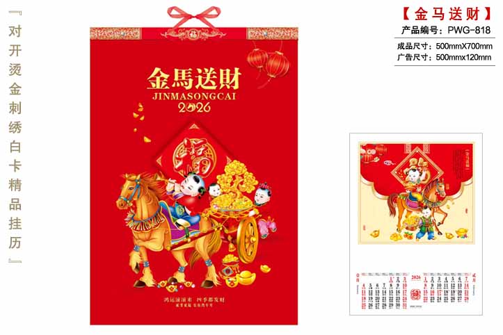 商品描述:產(chǎn)名:掛歷批發(fā),規(guī)格:54X90,系列:大對(duì)開絲綢畫精品掛歷,工期:通版3-7天,專版10-15天
