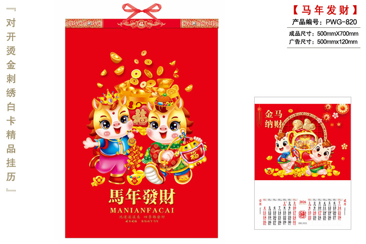商品描述:產(chǎn)名:掛歷樣品,規(guī)格:35.5X48,系列:四開鏡光卡紙掛歷,工期:通版3-7天,專版10-15天