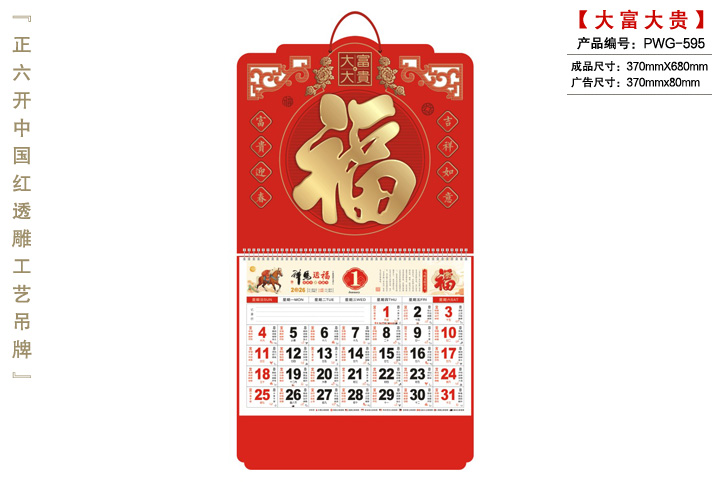 商品描述:產(chǎn)名:掛歷企業(yè),規(guī)格:42X57,系列:大四開鏡光卡紙掛歷,工期:通版3-7天,專版10-15天